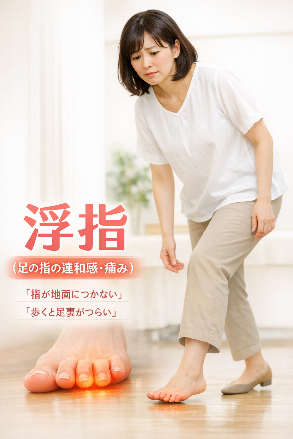 浮指で悩む辛い日々、私たちがあなたを支えます。足の土台を整え、笑顔で歩く未来へ導きます。